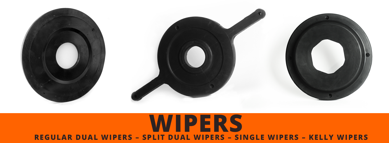 Our wipers are manufactured in a very special rubber compound, which is resistant to oil based and water drilling muds. This compound has also the best resistance qualities against abrasion and tearing. It is also reinforced with a metal insert.Types: single, dual split, dual solid and kelly wiper. Sizes: 14, 17, 19 y 22 inches. Kelly wipers models: square and hexagon.